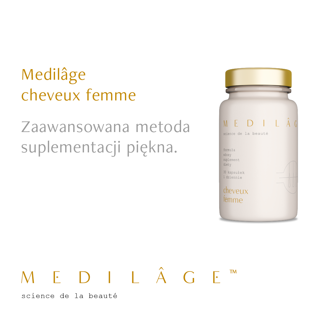 Kompleksowe wsparcie dla osłabionych włosów kobiecych. Medilâge Cheveux Femme wzmacnia włosy od wewnątrz, skracając fazę wypadania (telogen) i wydłużając fazę wzrostu (anagen). Składniki aktywne odżywiają cebulki i skórę głowy, przywracając włosom siłę, sprężystość i zdrowy wygląd. To idealne wsparcie dla Twoich włosów w okresie ich wzmożonego wypadania!