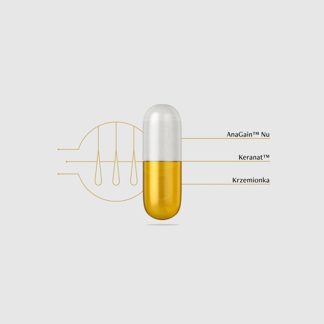 mniej wypadających włosów po 2 mc przyjmowania składnika AnaGain™ Nu*